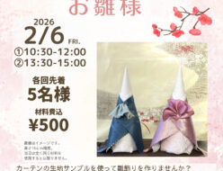 【イベント告知】2/6 カーテン生地でお雛様 ワークショップ開催します