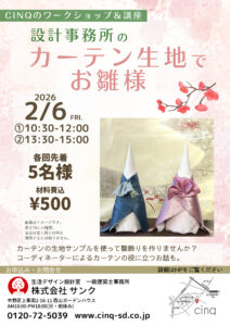 【イベント告知】サンクのワークショップ カーテン生地でお雛様 2026/2/6