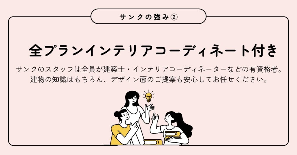「住まいを何とかしたい」「住み心地の良い家を実現したい」と考えておられる方、設立40年の女性のインテリアデザイン・設計事務所㈱サンクに相談してみませんか。